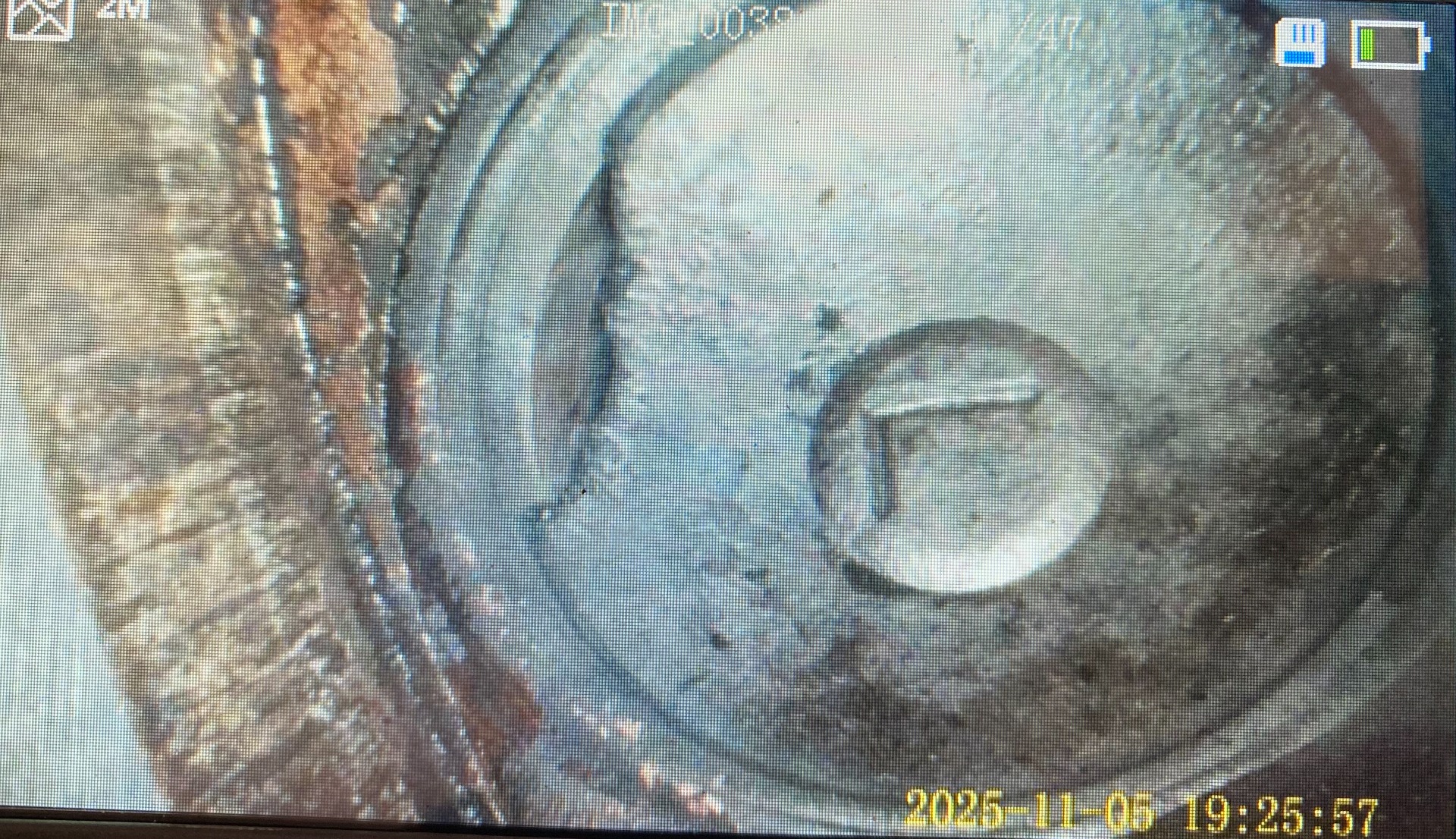 A kameraképből látható, hogy a hengerfej megbontására szükség lesz a hiba elhárításához. Itt a szelepcsere elkerülhetetlen.